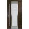 Eco Line Haustür AC 68mm M04 Nussbaum mit vertikalem Glasstreifen Rechts in Edelstahlapplikation